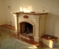 Камин состоящий из строительных элементов, выполненных из высококачественного теплонакапителя. Деталь для оформления цоколя, элементы для отделки сторон, и фартука, выложены панелями из натурального камня. Разновидность и цвет натурального камня...